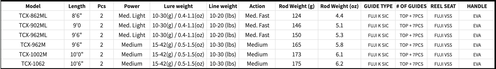 This series features six tuned models, spanning lengths from 8’6” to 10’6” and optimized for lure weights from 10g up to 42g. These rods excel when finesse presentations, long casts, and precise lure control are most important.