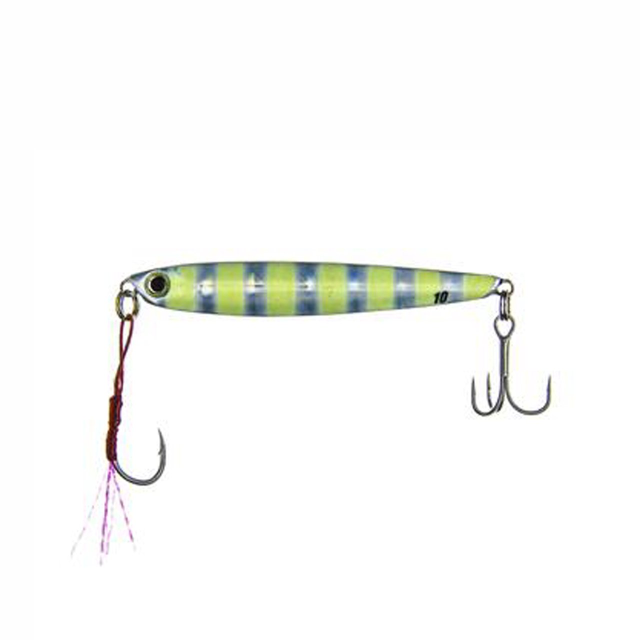 0.35oz (10g) | 2.17" (55mm) | Japanese Single Assist hook x 1 with tinsel | Japanese Treble hook x 1 |